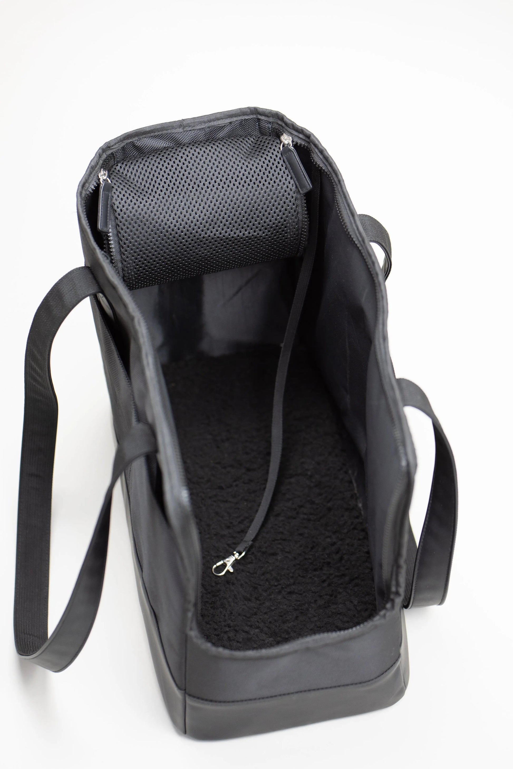 Sized for airline compliant pet carriers for short domestic flights, it’s lightweight and easy to carry, making it ideal for pet travel. The carrier features multiple storage pockets for convenience and includes a machine-washable Sherpa pad to keep your pet warm and comfortable. For added safety, an adjustable safety tether and closable mesh ensure your pet stays secure while you’re out and about.
